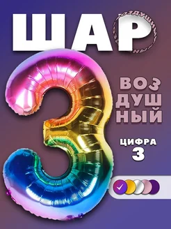 Фольгированный шар цифра "3", градиентный