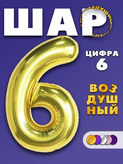 Фольгированный шар цифра "6", золотистый