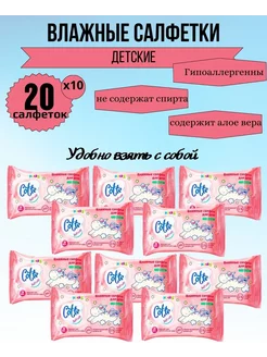 Влажные салфетки детские, 10 упаковок по 20 шт