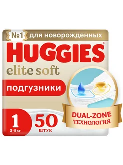 Подгузники Хаггис Elite Soft размер 1, 3-5кг, 50шт