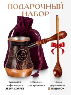 Подарочный Набор Турка медная 450мл +Ложка деревянная