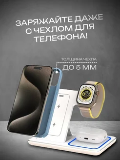 Складная Беспроводная зарядка для iPhone и Android 3 в 1