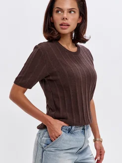 Кофта летняя вязаная трикотажная в однотонную полоску