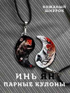 Парный кулон Инь Янь Рыжый Черный Лис
