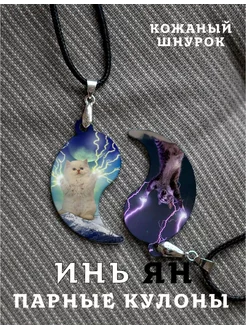 Парный кулон Инь Янь Коты с Молниями