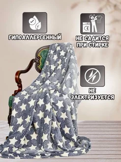 Плед 180х200 см на кровать и диван велсофт Звезды