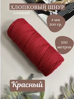 Хлопковый плоский шнур 4 мм 100 м - Красный