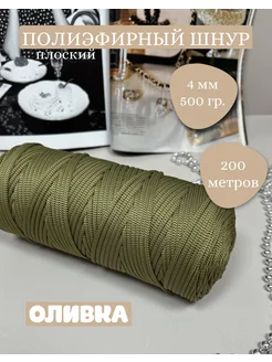 Полиэфирный плоский шнур 4 мм 200 м - Оливка
