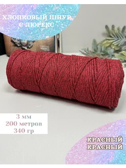 Хлопок шнур 3 мм 200 м - Красный, красный