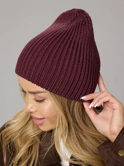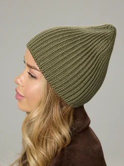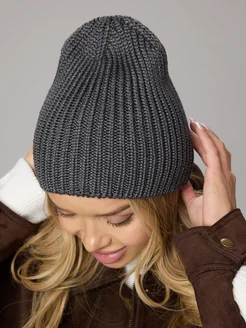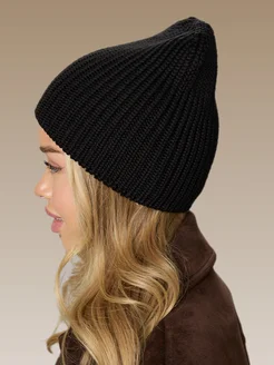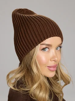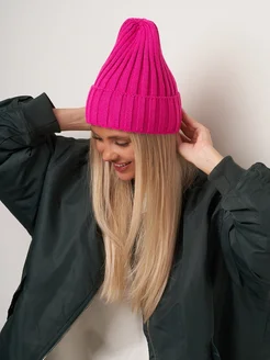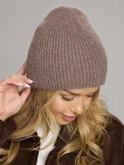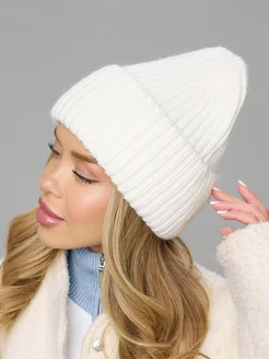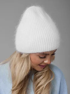 Шапка зимняя бини вязаная из ангоры без подворота с флисом