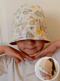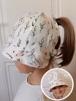 Панама летняя двухсторонняя с отверстием для хвостиков