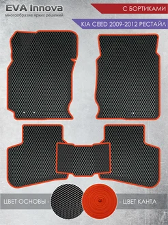 Коврики ЭВА Киа Сид рестайл 2009-2012 черные красный кант