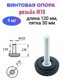 Винтовая опора регулируемая, резьба М10, 12 см, 4 шт