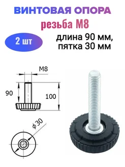 Винтовая опора регулируемая, резьба М8, 9 см, 2 шт