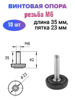 Винтовая опора регулируемая, резьба М6, 35 мм, 10 шт
