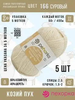 Пряжа Козий пух 100% натурал шерсть 5 шт 50г 400м эко серия