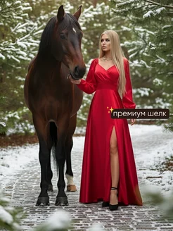 Новогоднее платье длинное праздничное в пол с разрезом