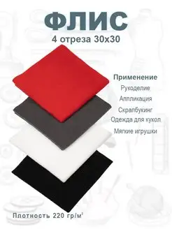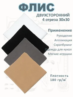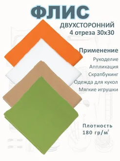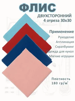 Лоскуты ткани флис для рукоделия 30х30 см 4 отреза
