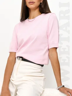 Джемпер вязаный тонкий с коротким рукавом в полоску