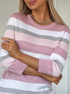 Джемпер тонкий вязаный с рукавом 3 4 в полоску