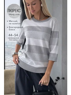 Джемпер тонкий вязаный с рукавом 3 4 с люрексом