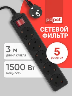 Сетевой фильтр AP01006-3-B 3м (5 розеток) черный