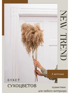 Сухоцветы для декора, пампасная трава букет из 3 веточек