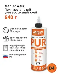 ПУР клей Полиуретановый столярный клей D4, 540 г