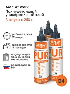 ПУР-клей Полиуретановый столярный клей D4, 3 штуки х 250 г