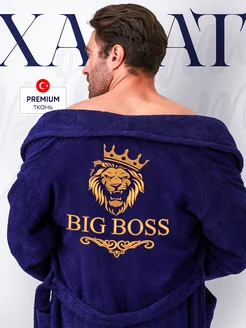 Халат махровый домашний банный с вышивкой BOSS в подарок