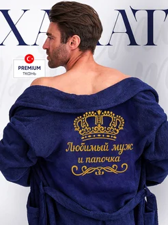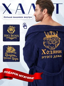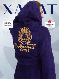 Халат махровый с капюшоном с вышивкой банный в подарок