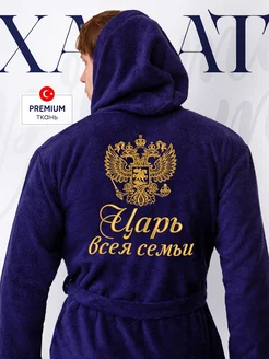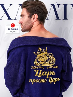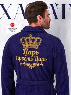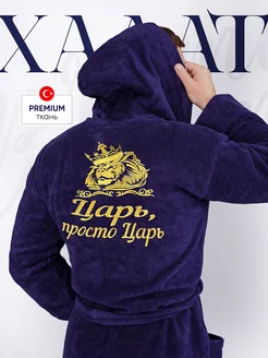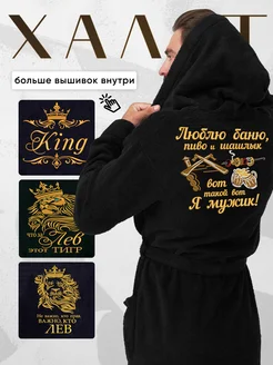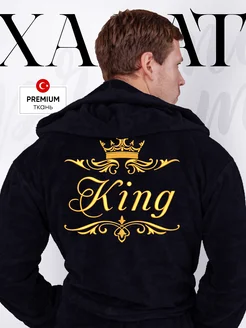 Халат домашний банный махровый капюшон вышивка KING Турция
