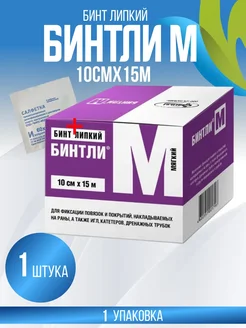 Бинт липкий БИНТЛИ М, 10см х 15 м + салфетка