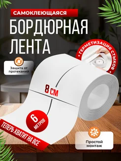 Бордюрная лента 8 см плинтус для ванны самоклеящаяся 6 м