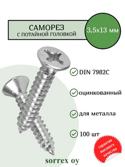 Саморез по металлу 3,5х13 мм DIN 7982С потайной острый