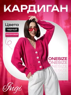 Вязаный кардиган укороченный оверсайз на пуговицах