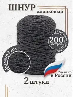 Шнур для вязания хлопковый 3 мм (2 шт по 100м)