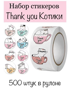 Наклейки в рулоне Спасибо Котики 500 штук