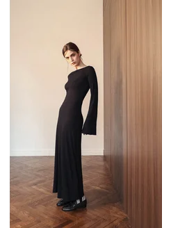Платье в длине макси с рукавами клеш