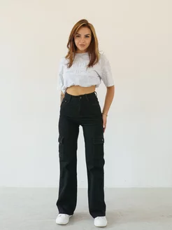Джинсы прямые карго широкие