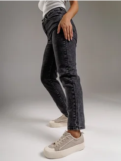Джинсы женские бананы серый с высокой посадкой бойфренды