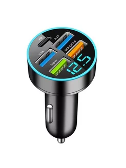 Автомобильная сверхбыстрая зарядка 4USB+PD с вольтметром
