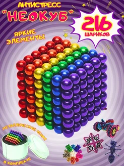 Неокуб магнитный 216 шариков 3 мм разноцветный 6 цветов