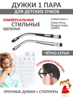 Дужки заушники для детских очков чёрно-серые, стопперы
