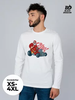Лонгслив футболка мужская белая хлопок Санта-Клаус в машине