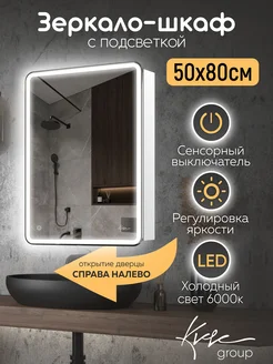 Зеркало шкаф с подсветкой в ванную 50x80 правое Sky