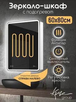 Зеркало шкаф с подсветкой в ванную 60x80 правое Sky