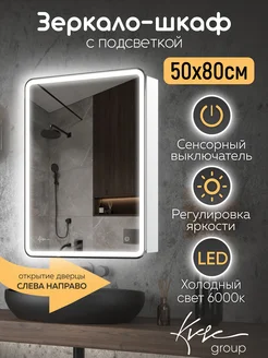 Зеркало шкаф с подсветкой в ванную 50x80 правое Антипар Sky