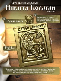 Подвеска, нательный образок "Никита Бесогон", бронза 25 гр