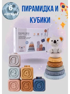 Набор мягких кубиков и пирамидки развивающий с грызунком